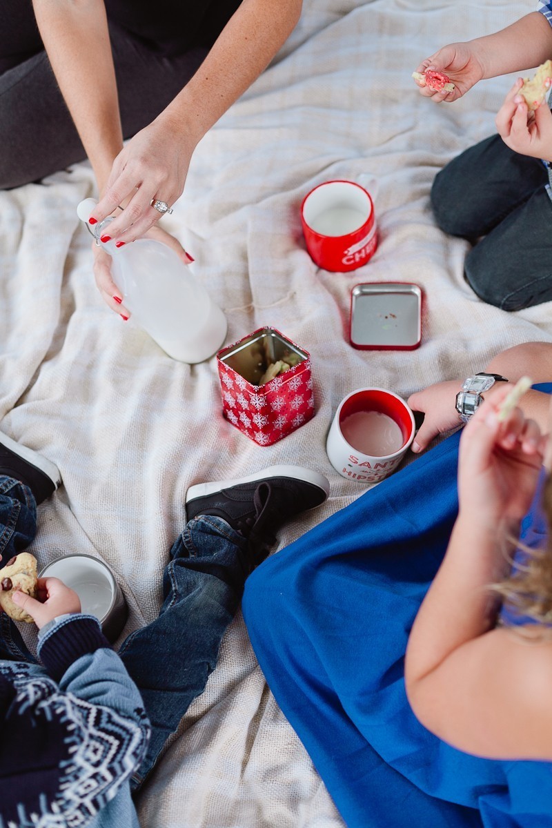 I’m trying to be more and more intentional about the traditions we create for our family. Taking in what’s important to us and what makes our holiday moments special… like time together and cookies. Recently while I was home for a quick two day turnaround between trips, I made good on a promise. It was cookie time! With little helping hands in the kitchen we poured, mixed, rolled and frosted. The cookies were seriously delicious (this chocolate chip cookie recipe), and so were the wee ones helping to make them. Of course, what better way to indulge in those cookies and mugs of milk than an afternoon spent enjoying one of their favorite things, a picnic.